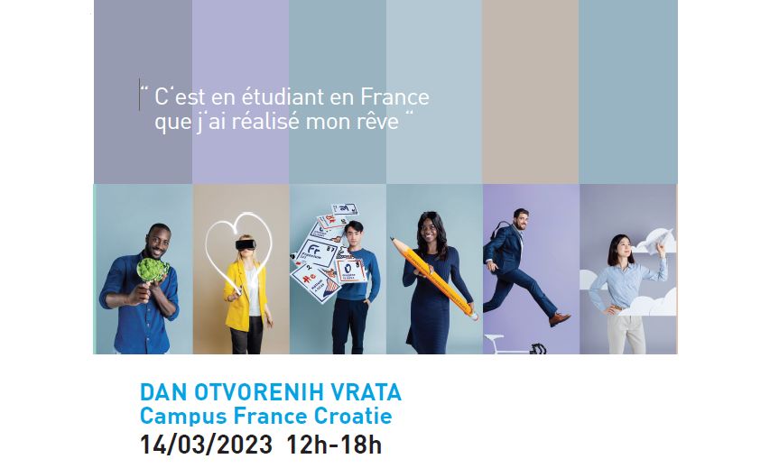 Francuski institut u Zagrebu poziva sve zainteresirane studente i profesore na „Dan otvorenih vrata Espace Campus France Croatie“ koji će se održati u utorak 14. ožujka od 12 do 18 sati u Medijateci Francuskog instituta u Hrvatskoj u Preradovićevoj 5.