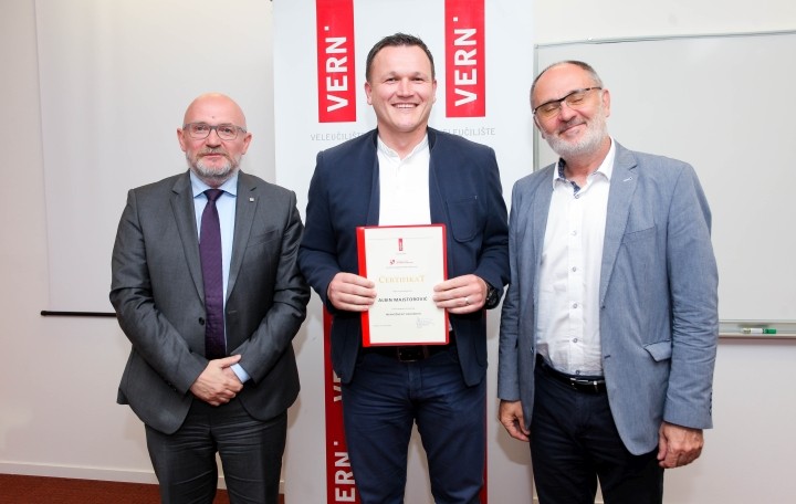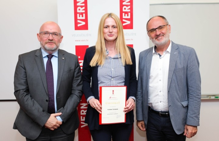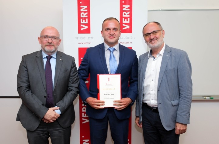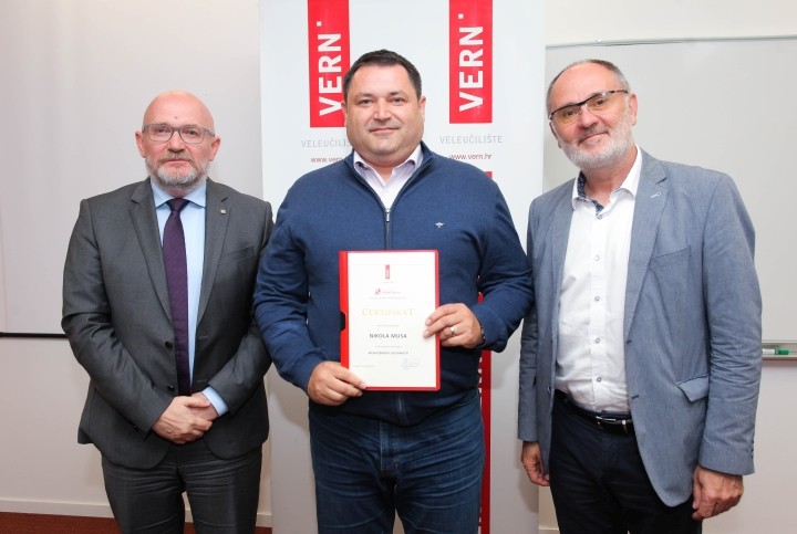 The certificates were presented to them by Alen Ostojić , president of the Croatian Association of Safety Managers, and Prof. Dr. Vlatko Cvrtila , dean of the VERN' Polytechnic and an expert in safety issues.