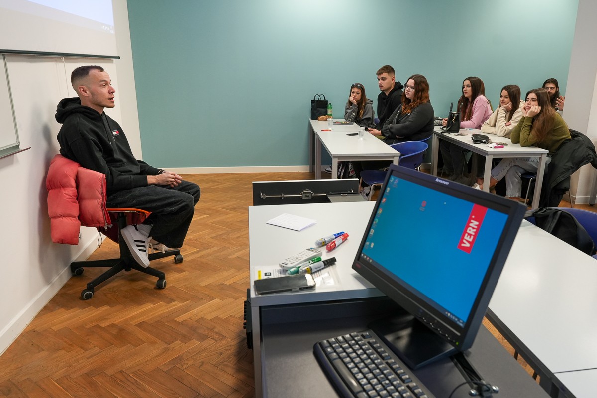 Marko gave a presentation on influencer marketing to our students, during which he talked about his beginnings, parental support in his business, the first camera he used to record YouTube content, and the way he personally "hit" a niche and audience. Proof of this is the fact that today he collaborates with numerous brands that want to link their product to its content, and he also explained to the students how he negotiates cooperation with brands and what a work process around agreed content looks like.