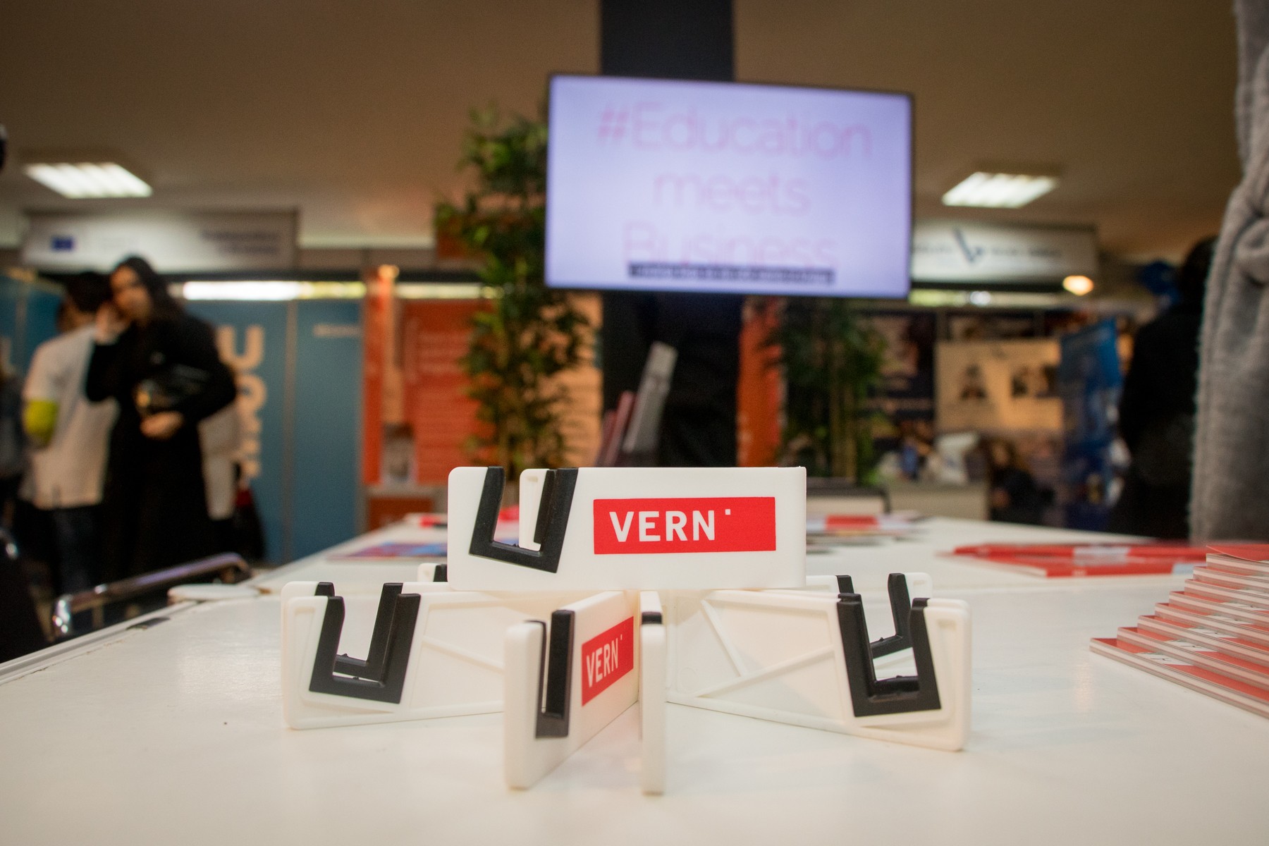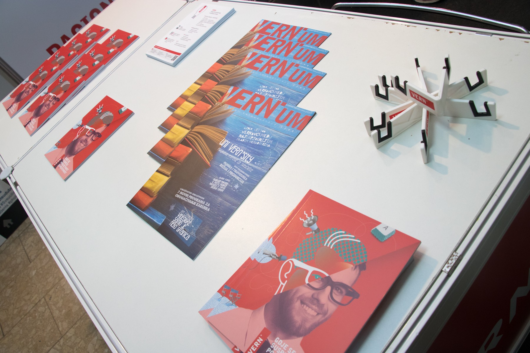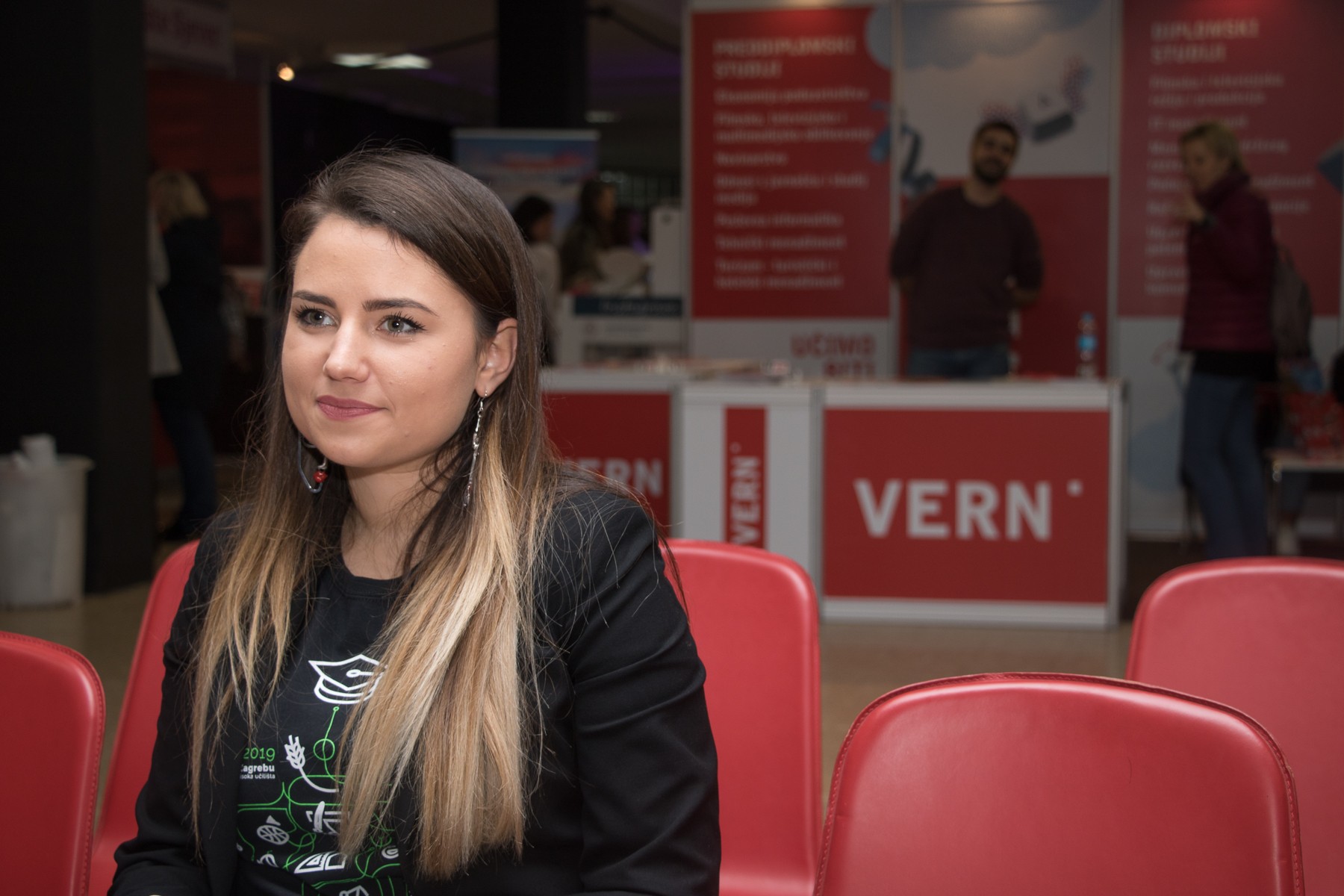 Posjetitelji Smotre, mahom maturanti i budući studenti, u VERN’ovom su se izložbenom prostoru družili s našim studentima od kojih su saznali sve informacije o preddiplomskim i diplomskim studijima, mogućnostima upisa, nastavnim i izvannastavnim aktivnostima, studentskom životu na VERN’u, našoj Udruzi studenata, kao i kulturnim i sportskim aktivnostima za studente.