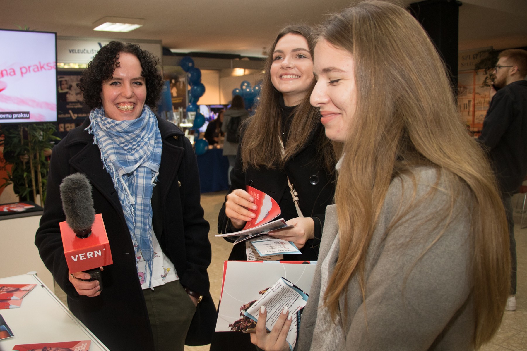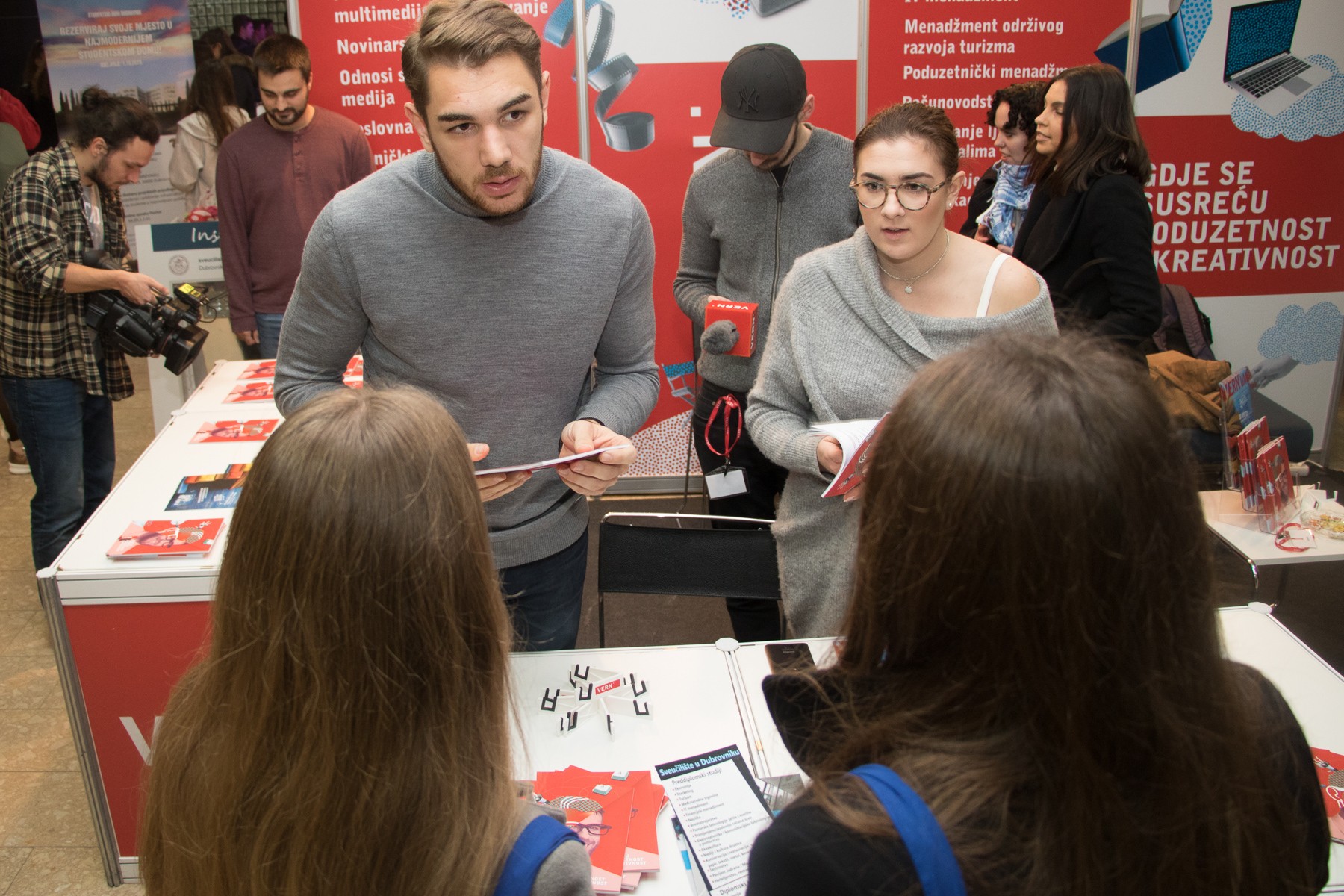 Raznolikost VERN’ovih studijskih programa prezentirali su i naši studenti filma, novinarstva i odnosa s javnošću, koji su intervjuirali posjetitelje Smotre i razgovarali s njima o izboru fakulteta.