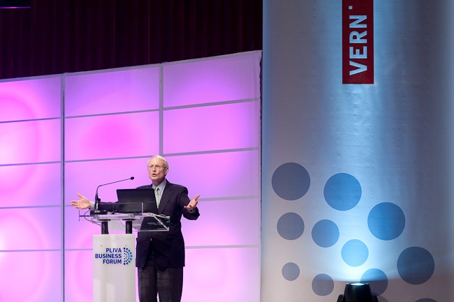 Zagreb, 15. svibnja - Michael Porter, harvardski profesor i utemeljitelj koncepta nacionalne konkurentnosti gostovao je na Pliva Business Forumu u organizaciji Veleučilišta VERN' i poslovnog tjednika Lider. Njegovo je predavanje o konkurentskim strategijama za treći milenij slušalo više od 1500 predsjednika uprava, menadžera, profesora i studenata.