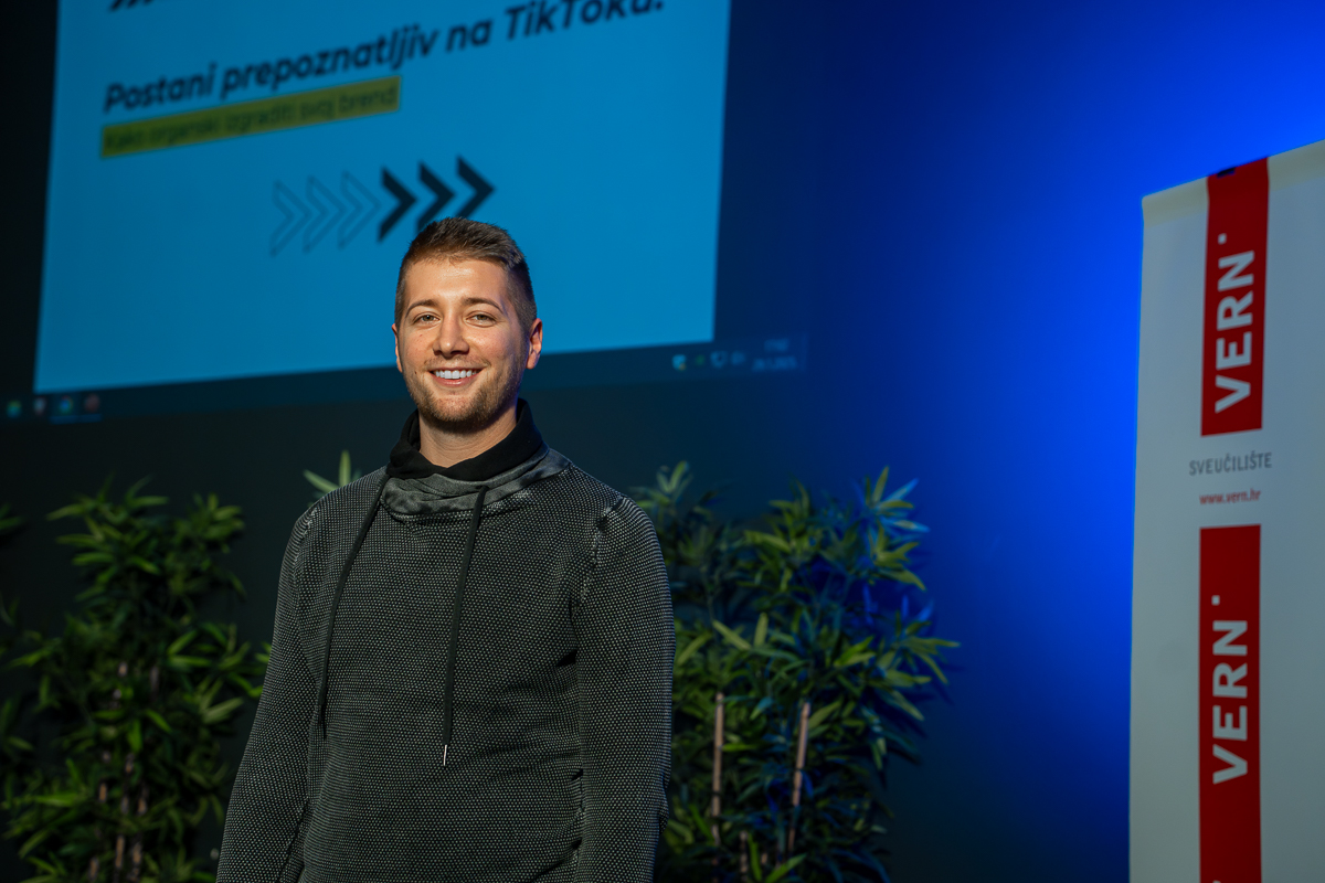 Odgovore na ova i druga pitanja VERN’ovim studentima je otkrio Dario Marčac, jedan od najznačajnijih TikTokera s ovog područja i osnivač najveće zajednice TikTok kreatora u regiji pod nazivom Crew.