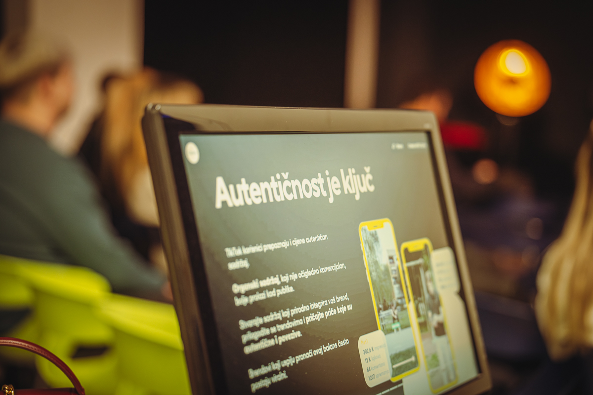 Iako su brendovi svjesni dosega kojeg ostvaruju ovim kanalom – „čak 118 posto za razliku od 20 posto putem Instagrama i tek 5,2 posto putem Facebooka“, pokazao je Dario – moraju znati da TikTok zahtjeva drugačiji pristup, drugačije formate i narative.