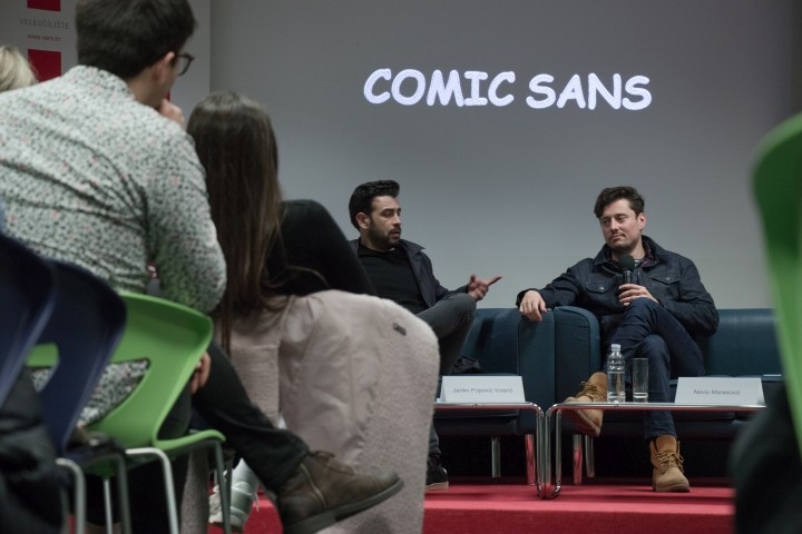Čast da otvori projekt imao je film „Comic Sans“ redatelja Nevia Marasovića u kojem glavnu ulogu tumači glumac Janko Popović Volarić. I dok su studenti i predavači u „filmskom ambijentu“ gledali zadnje kadrove filma, spomenuti je dvojac ušetao u dvoranu, gdje su nakon filma sudjelovali u panel diskusiji sa studentima.