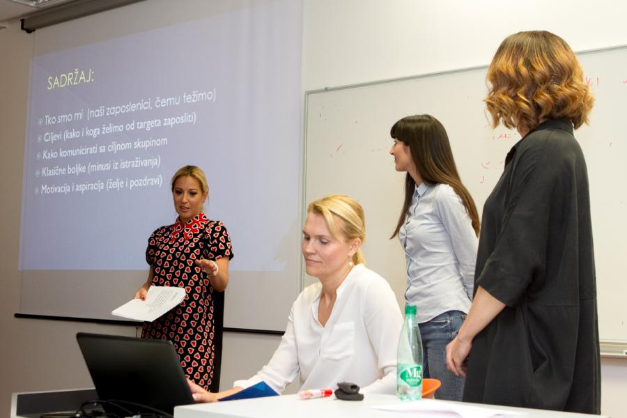 After the presentation, the student projects were evaluated by business and academic mentors, Maja Crnjak , Director of the Human Resources Department at Erste&Steiermärkische Bank dd, and lecturers on the course, Tanja Pureta and Maja Kolega .