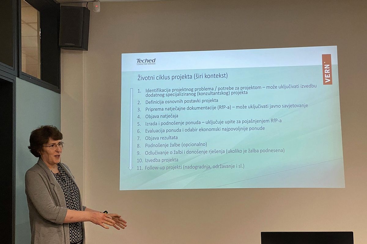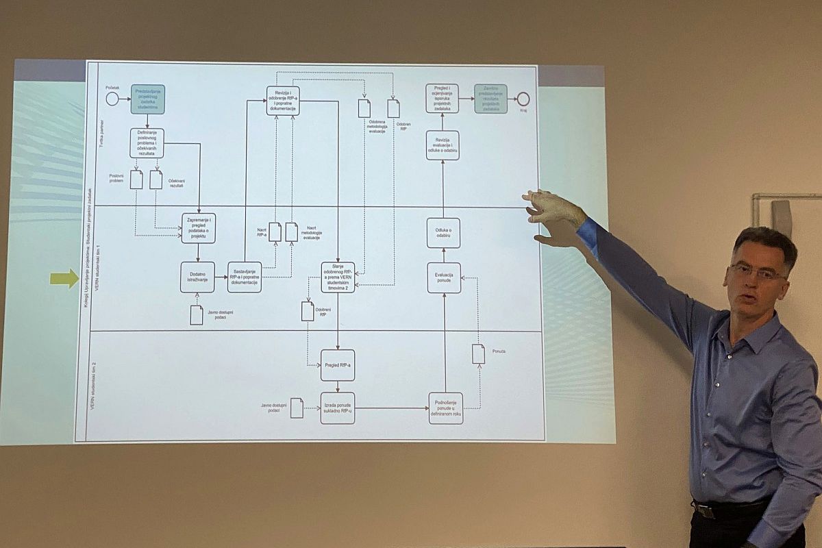 U okviru nastave na kolegiju Upravljanje projektima studenti diplomskog studija IT menadžment svakog semestra rade na projektnim zadacima odabrane tvrtke-partnera. Dio je to suradnje studenata s tvrtkama, u okviru VERN’ovog projekta suradnje s gospodarstvom #EducationmeetsBusiness, a na ovaj način usvajaju i primjenjuju ujedno metode i tehnike iz kataloga znanja o upravljanju projektima.