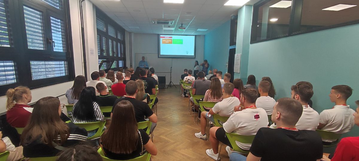 Voditelj odjela za sport Marijo Strahonja predstavio im je program VERN’ Sport i upoznao ih s brojnim mogućnostima za natjecateljsko i rekreativno bavljenje sportom tijekom studija na VERN’u.
