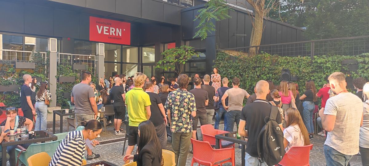 Nakon službenog dijela programa druženje novih studenata i njihovih starijih kolega i profesora nastavljeno je na dvorišnoj terasi VERN’ove kantine.