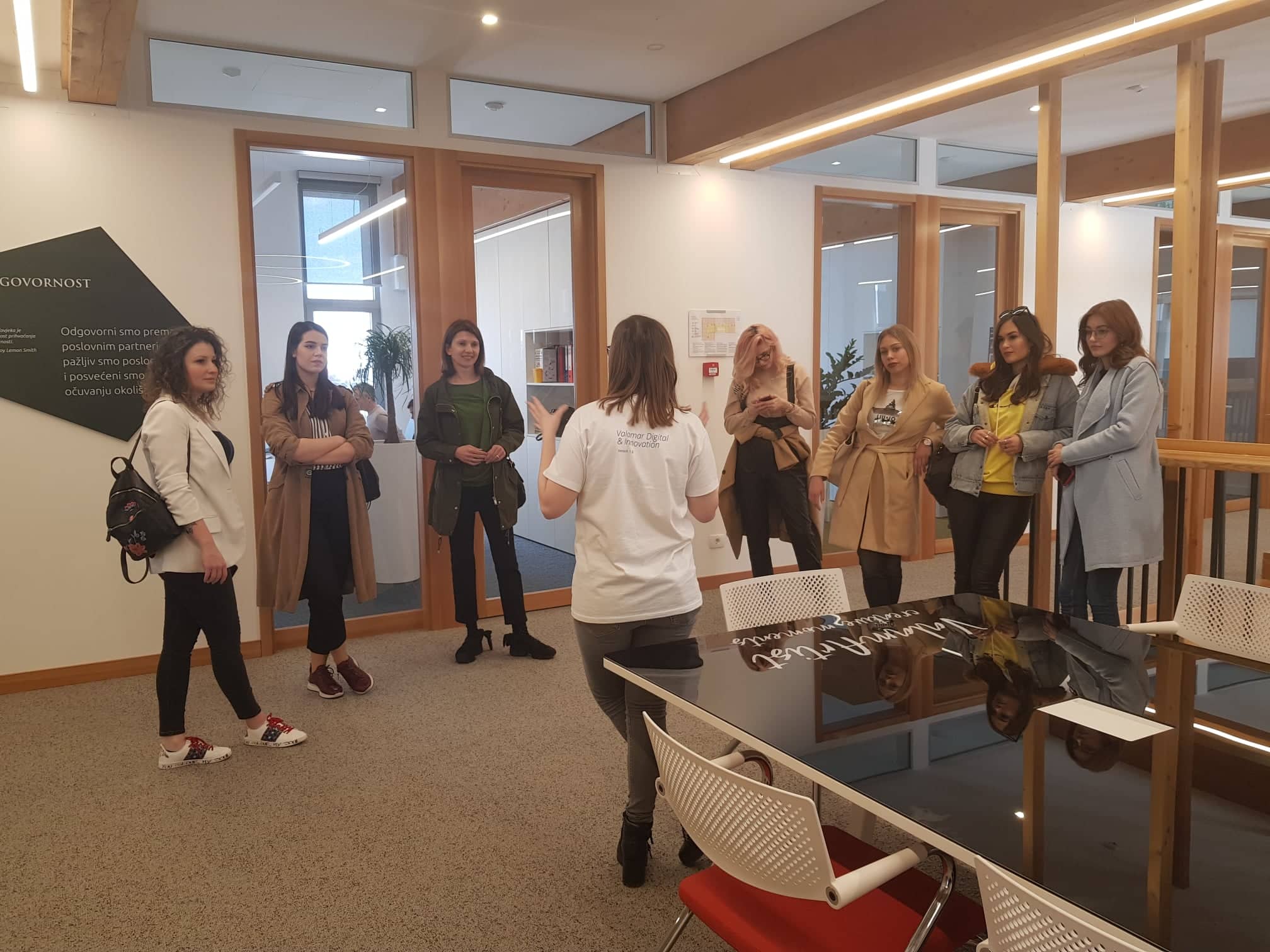 Prvog dana boravka studentice su obišle upravnu zgradu u pratnji Irine Adamović, suradnice u odjelu korporativnih poslova, koja je ih je vrlo detaljno informirala o poslovima koji se obavljaju unutar odjelnih jedinica, te im je naglasila važnosti u promjenama organizacijske kulture.