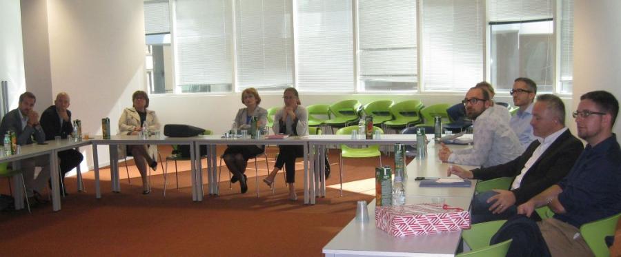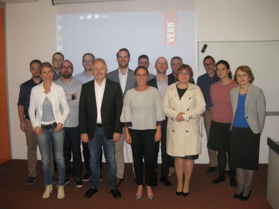 Austrijsko izaslanstvo u sastavu Thomas Leitner (AviBit GmbH – ADB Safegate Graz), Wolfgang Bräu (Auris IT Consult GmbH), Clemens Kaposi i Edin Ibrahimi (HAS TO BE GmbH), Andrea Weiner i Aleksandar Savanović (STRABAG AG), Barbara Stampf (dr. Barbara Stampf Personalmanagement) te Igor Crnković (Austrijski ured za vanjsku trgovinu), održalo je neformalni susret s našim predstavnicima mr. sc. Višnjom Grozdanić, prodekanicom za studije, Ivanom Vrhovski, voditeljicom Odjela za razvoj karijera, mr. sc. Ivom Berošem, voditeljem studija Poslovne informatike, dr. sc. Željkom Dobrovićem, voditeljem studija IT menadžmenta, dr. sc. Tamarom Hadjinom, voditeljicom studija Tehničkog menadžmenta te Draženom i Zdravkom Patekarom, autorima budućeg VERN’ovog studija Interneta stvari.