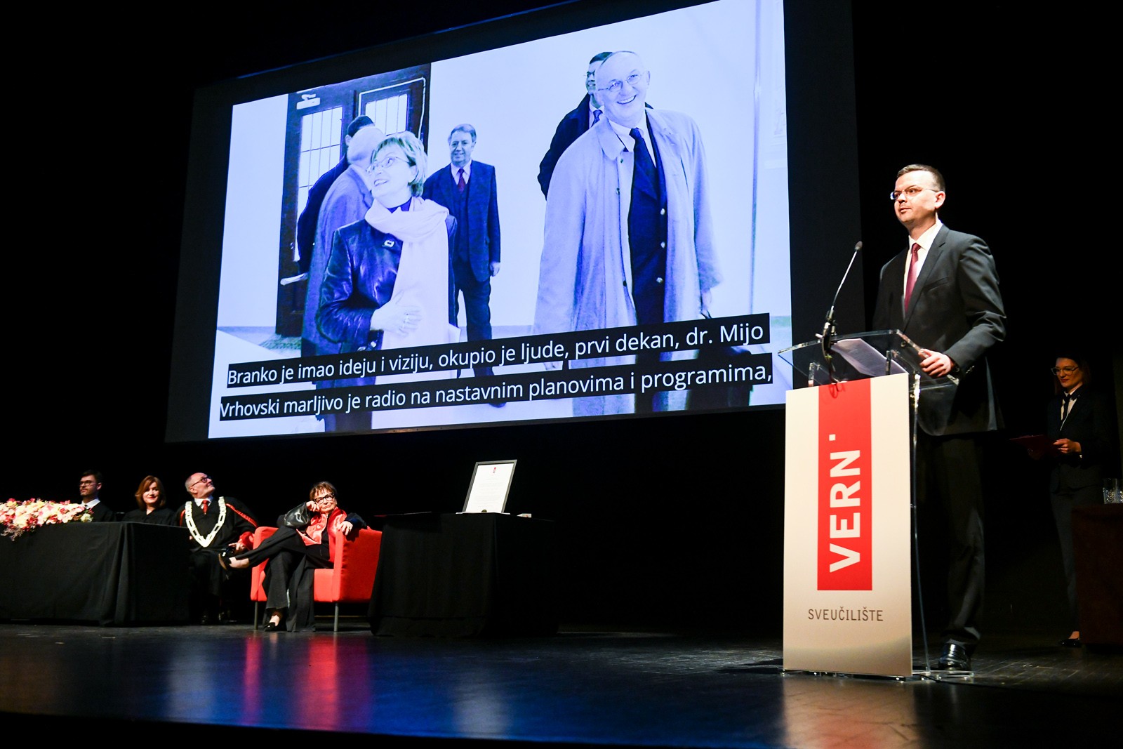 Glavni direktor Sveučilišta VERN’ Ivo Ivančić zahvalio se na njezinom doprinosu, govorom na njemačkom jeziku, a ovom je prigodom prikazan i dokumentaristički presjek razvoja VERN’a.