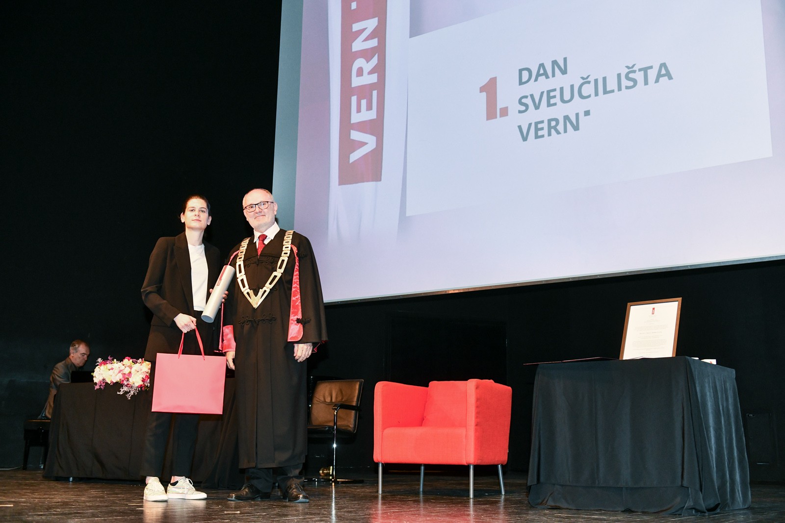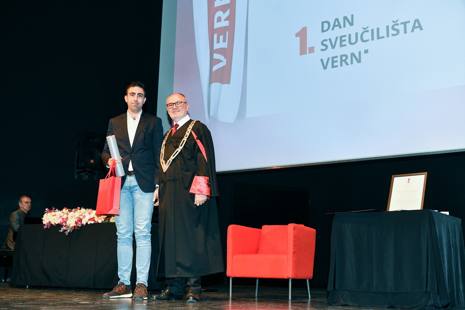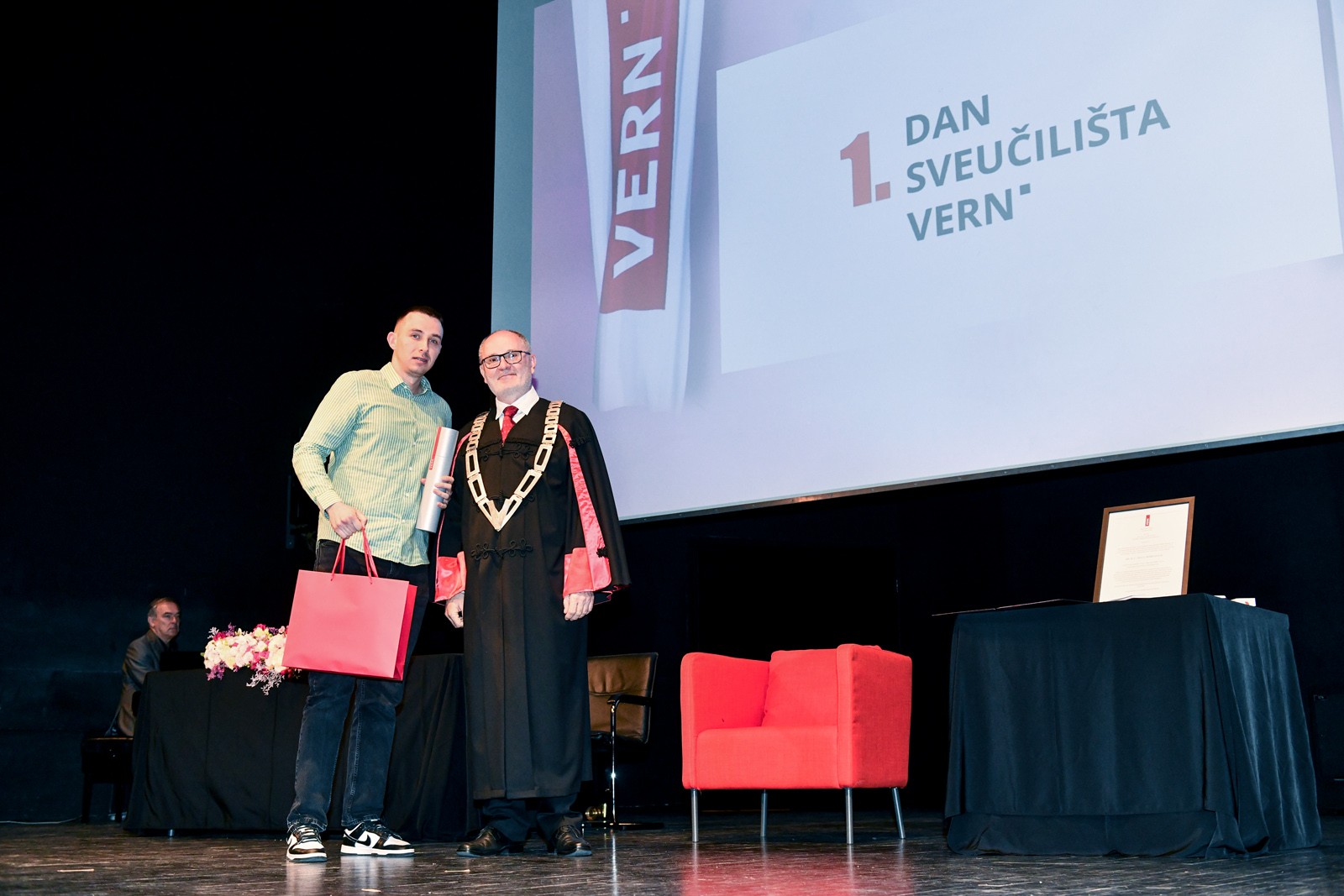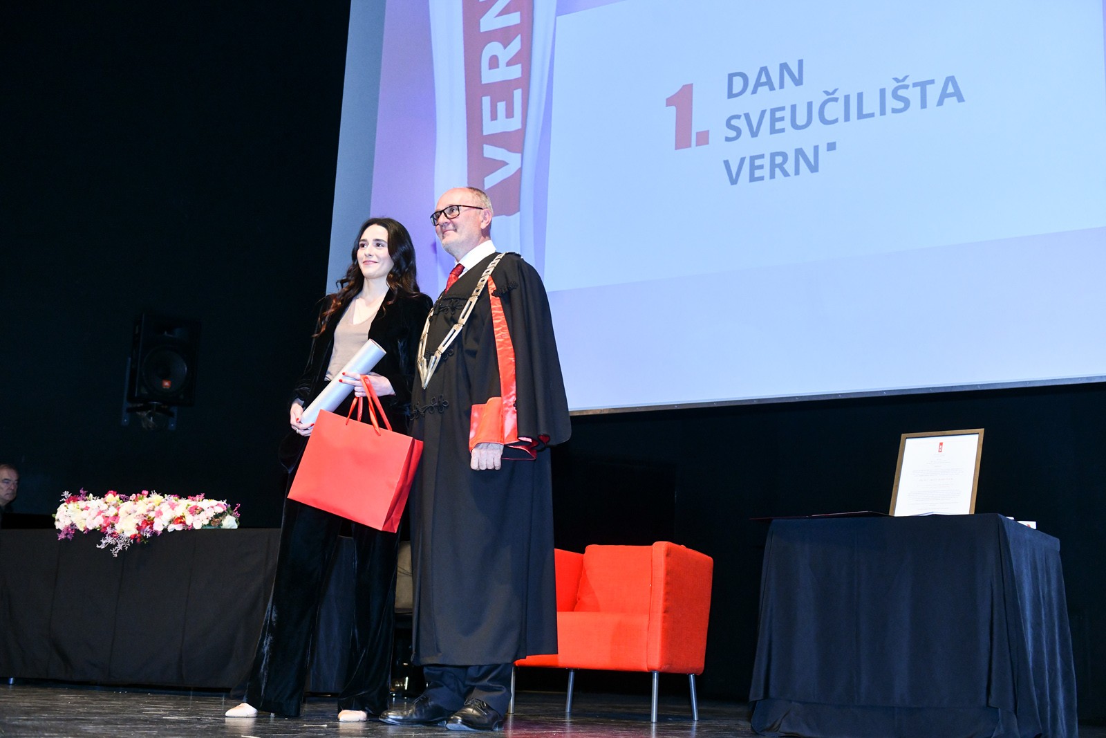 Obilježavanje prvog Dana Sveučilišta VERN’ istovremeno je bila i prilika da se posebnim priznanjima rektora nagrade najbolji studenti, koji su se tijekom dosadašnjeg studiranja posebno istaknuli akademskim uspjehom, izvannastavnim aktivnostima i profesionalnim dostignućima.