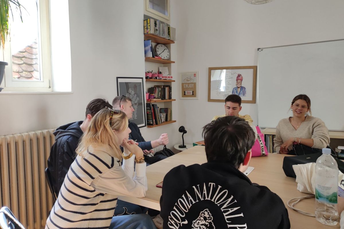 Naše kolege studente iz Njemačke, Španjolske, Portugala, Litve i Francuske te profesoricu mr. sc. Gordanu Ćorić dočekao je jedan od suosnivača zagrebačkog ogranka Hermes Arriaga koji im je pojasnio način djelovanja Impact HUBa Zagreb.