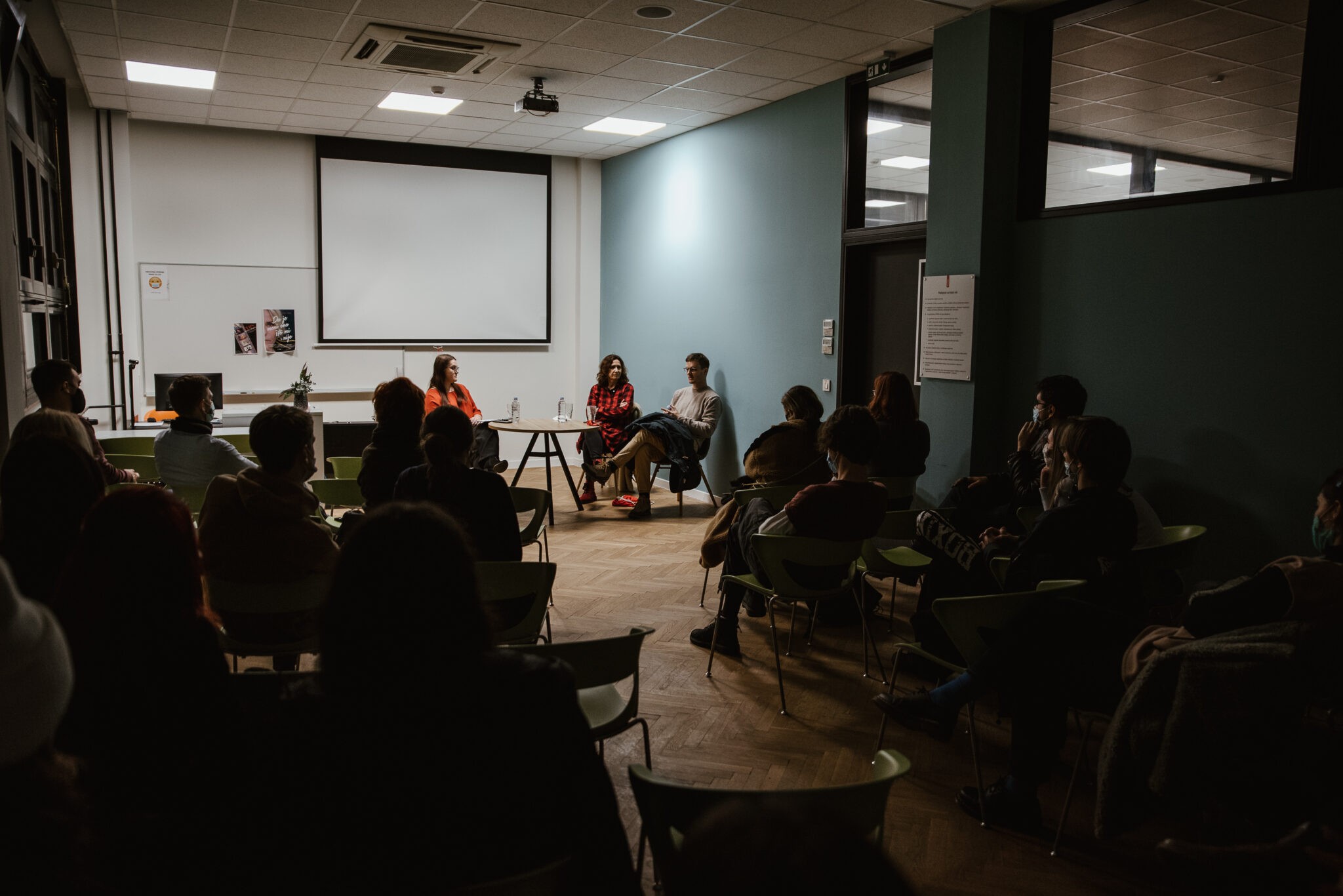 Od kuda ideja za snimanje filma, kako je izgledao produkcijski proces u pojedinim dijelovima, s kojim su se izazovima susretali prilikom snimanja, kako se razvijaju odnosi između glumaca i redatelja te je li dokumentarce zanimljive raditi od igranih filmova samo su neke od tema o kojima su studenti kasnije diskutirali s gostima projekcije.
