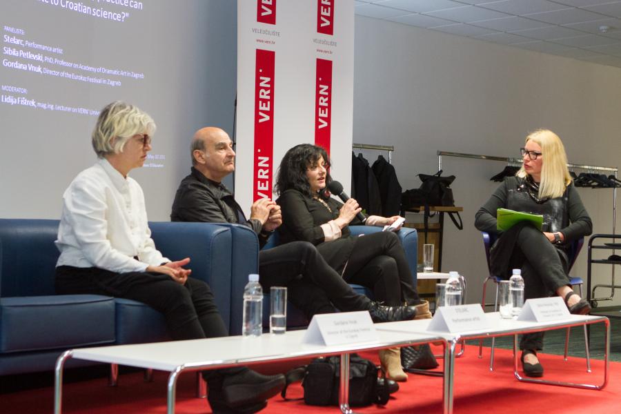 U sklopu svog boravka u Zagrebu, u okviru projekta „Kako praksom vođeno teorijsko istraživanje u umjetničkoj izvedbi može doprinijeti hrvatskoj znanosti“, na VERN’u je gostovao svjetski poznati bio-tech-art umjetnik Stelarc.