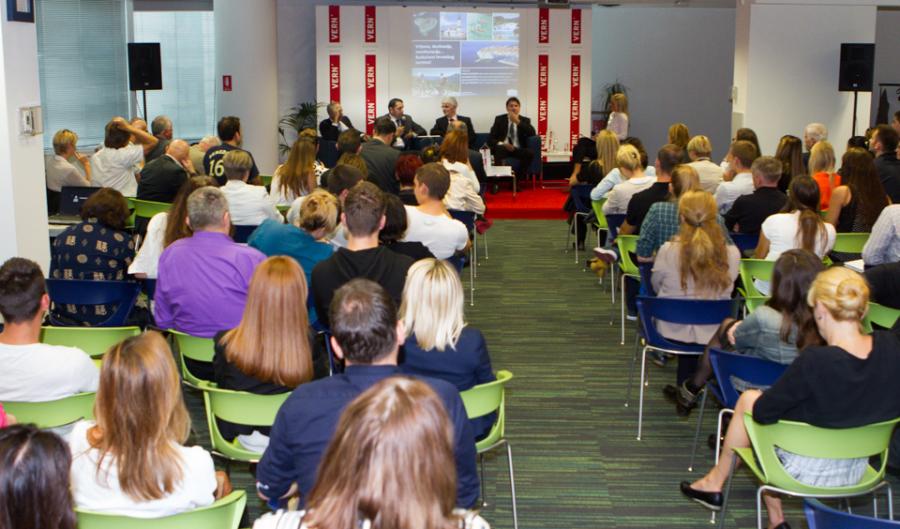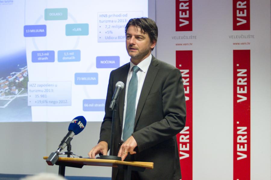 Danas je na Veleučilištu VERN’ održan panel pod nazivom „Vrijeme, destinacije, manifestacije… Budućnost hrvatskog turizma?“, na kojem su gostovali Darko Lorencin, ministar turizma Republike Hrvatske, Ratomir Ivičić, direktor Hrvatske turističke zajednice, te VERN’ovi profesori Željko Trezner, direktor Udruge hrvatskih putničkih agencija i Kristian Šustar, predsjednik Udruge poslodavaca u hotelijerstvu Hrvatske.