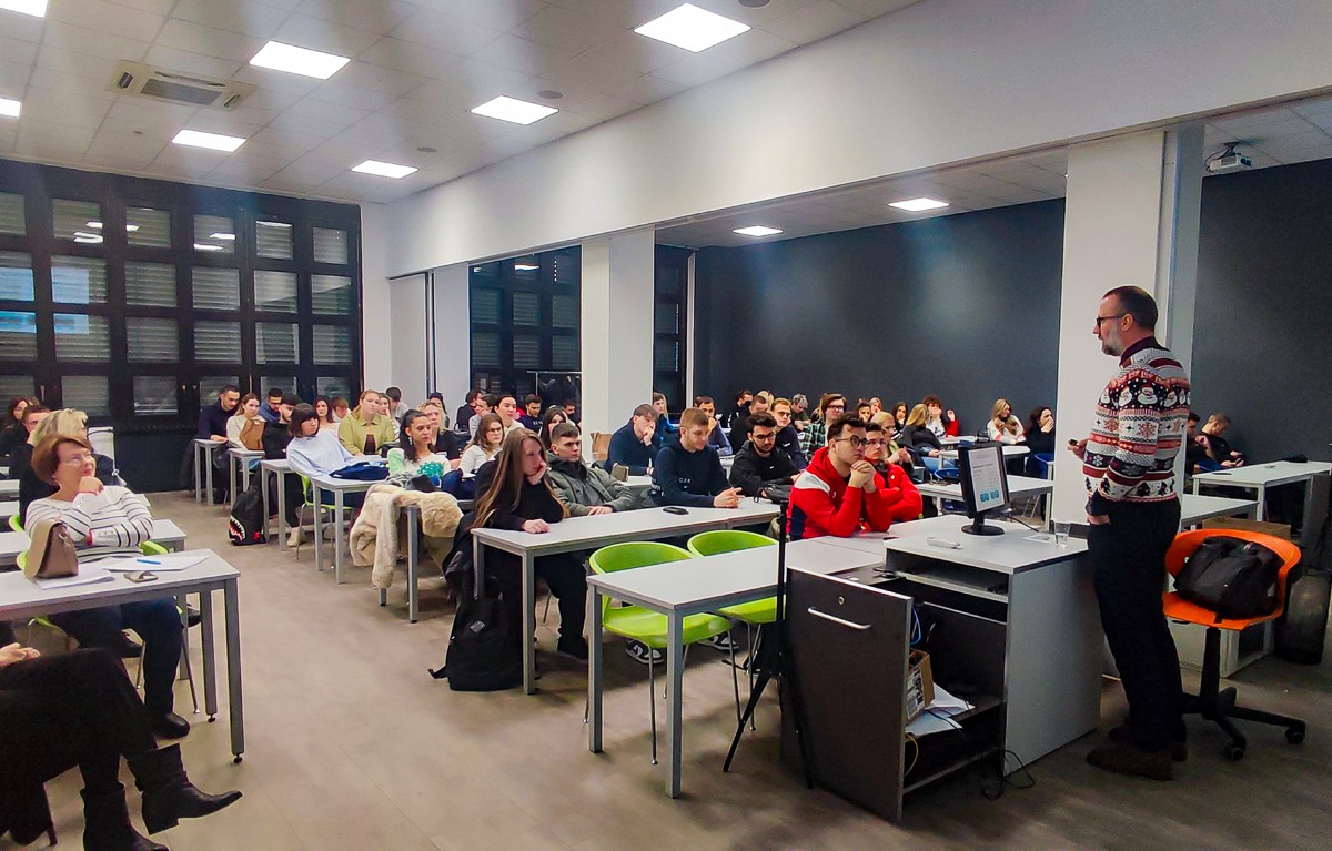 Voditeljica VERN’ovog Savjetovališta za studente, Nataša Jeličić, pri kraju predavanje je studente podsjetila da reducirano korištenje društvenih mreža mogu nadomjestiti kroz češće korištenje tehnologije za stjecanje novih znanja i vještina.