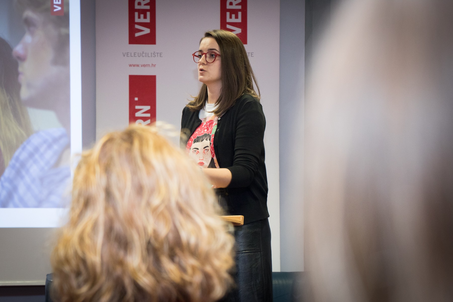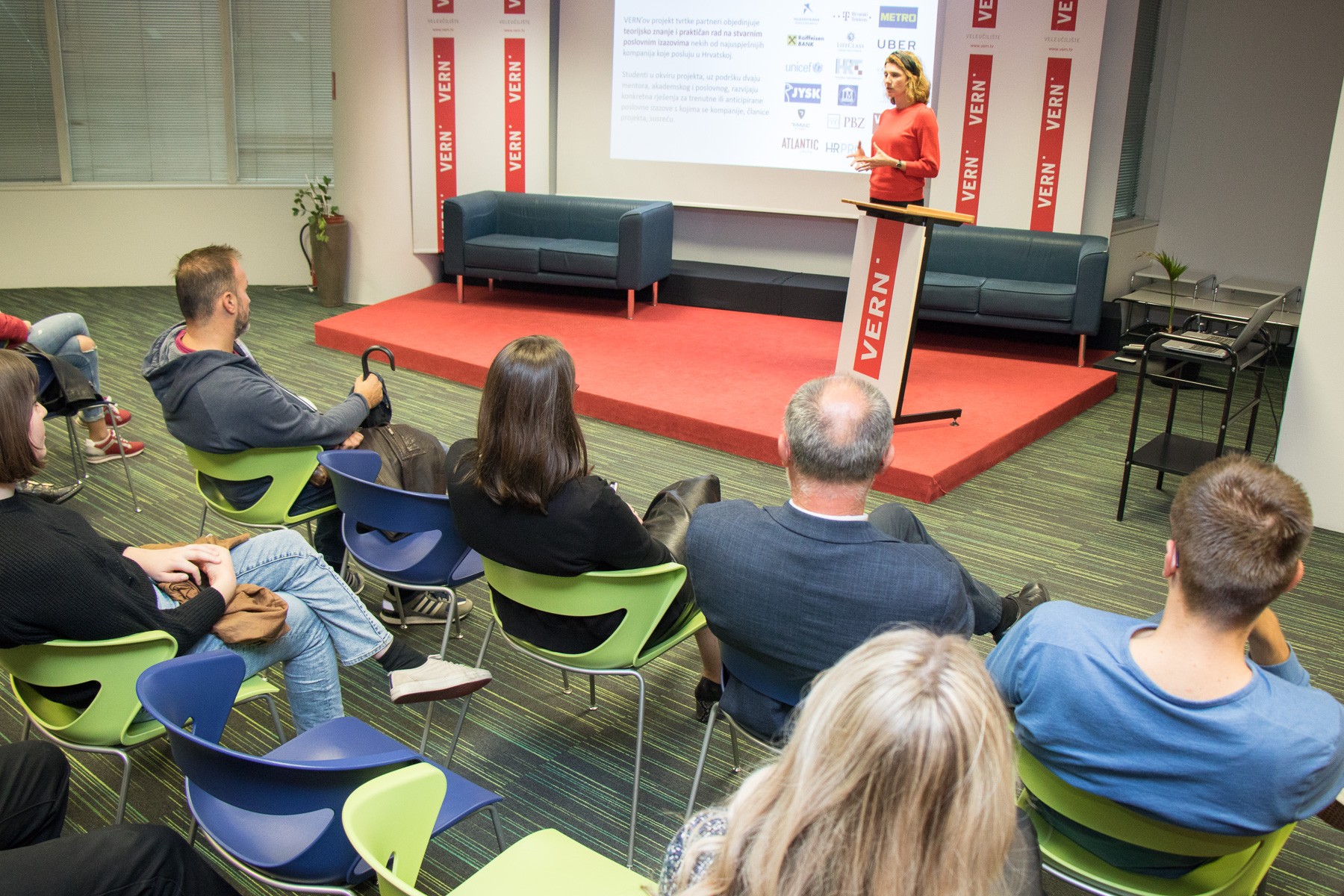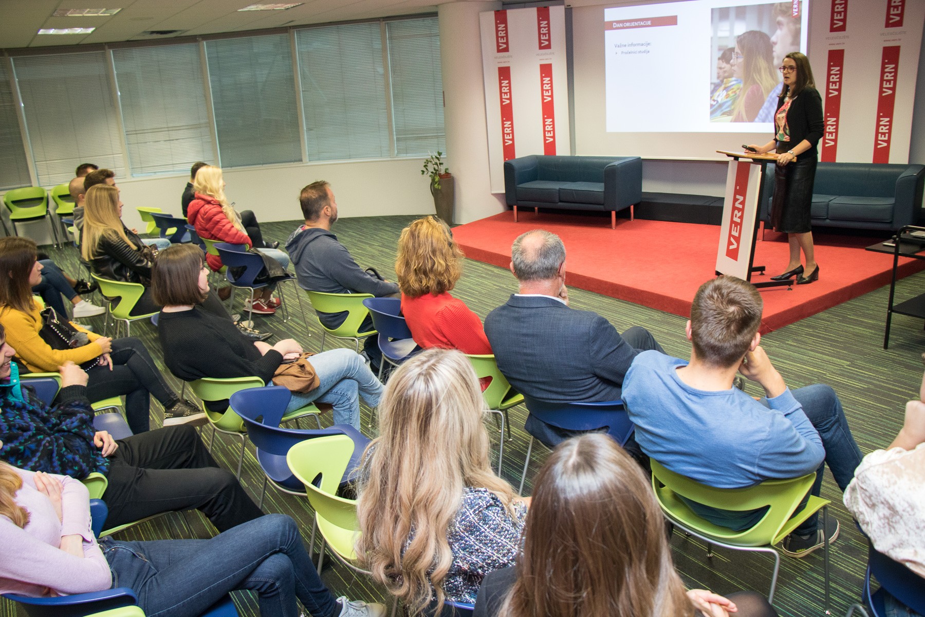 Jedinstveni VERN’ov koncept obrazovanja za tržište rada studentima je predstavila Nataša Jeličić, voditeljica projekta suradnje s gospodarstvom #EducationmeetsBusiness, koja im je najavila s kojim će potencijalnim tvrtkama studenti surađivati tijekom studija te kako kroz ovaj projekt mogu stjecati vrijedno iskustvo za buduće karijere i upoznati potencijalne poslodavce.