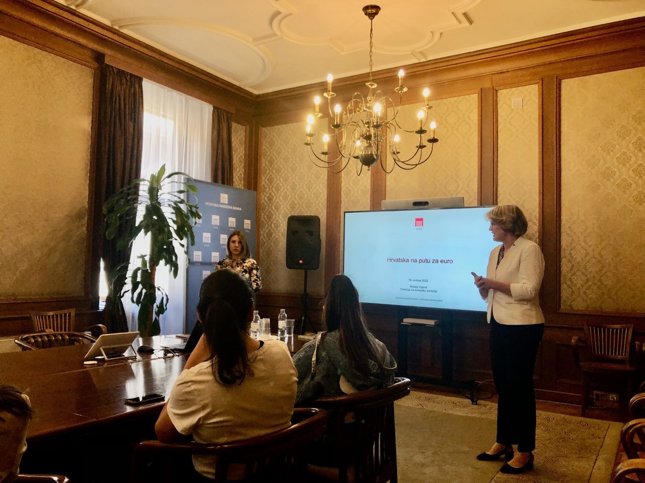 Predstavnici HNB-a su naše studente upoznali sa zaštitnim obilježjima novčanica i kovanog novca Republike Hrvatske, i to kroz uvid u primjerke krivotvorenog novca te usporedbu originalnih uzoraka emitiranog novca s uzorcima krivotvorenog novca. Studenti su na taj način mogli uvidjeti kako prepoznati krivotvoreni novac i tako se zaštiti uslijed svakodnevnih transakcija.