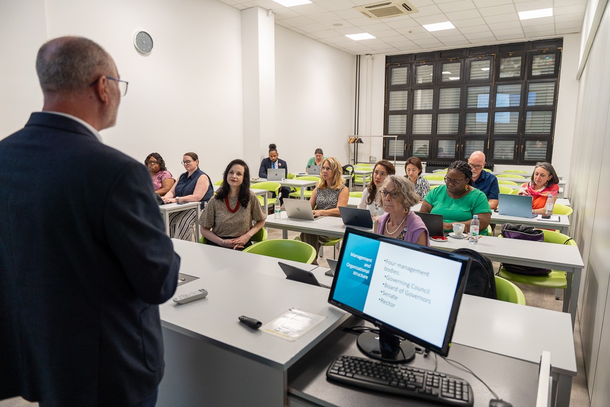 Na uvodnom sastanku rektor prof. dr. sc. Vlatko Cvrtila predstavio je povijest i akademsko djelovanje Sveučilišta VERN’, te goste upoznao s načinima upravljanja vizijom i misijom visokog učilišta. U nastavku, gosti iz SAD-a su u dvije grupe raspravljali o sljedećim temama: