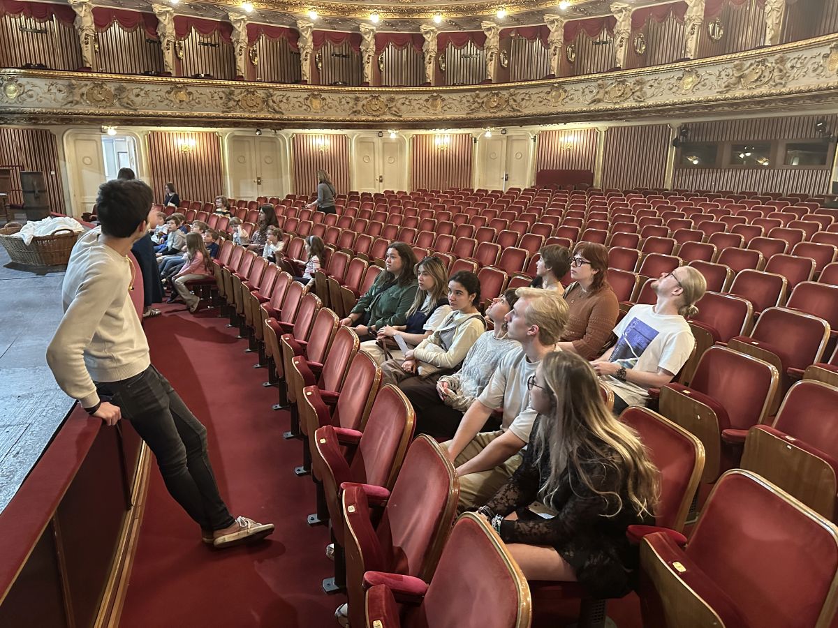 Razgledavajući svaki kutak nacionalnog teatra, studenti su uvidjeli kako izgleda kazališna produkcija, kako se organiziraju probe i predstave triju ansambala – drame, baleta i opere. Uz to, zavirili su na probu Labuđeg jezera, upoznali se s tehničkim aspektima pozornice, scenskim efektima, a sjedili su i u kazališnom VIP salonu i kraljevskoj loži te se upoznali s kazališnim protokolom.