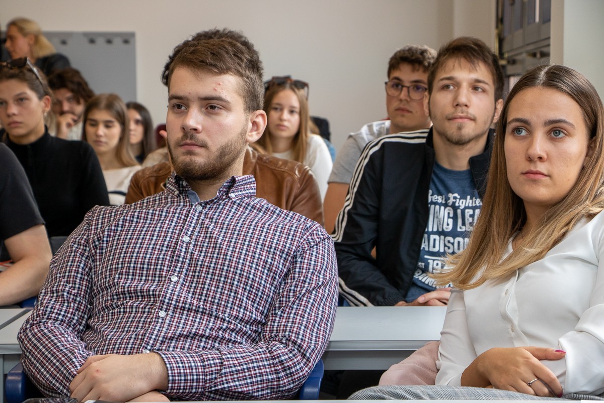Kako javno komunicirati, kako upravljati komunikacijskim aktivnostima i komunicirati s građanima te kako se boriti protiv dezinformacija u kontekstu globalnih izazova, studentima su na interaktivan i zanimljiv način otkrili stručnjaci iz NATO-a Maša Popović, savjetnica u predstavništvu Republike Hrvatske pri NATO savezu u Bruxellesu i Tom Morin-Robinson, djelatnik Službe za javnu diplomaciju NATO-a.