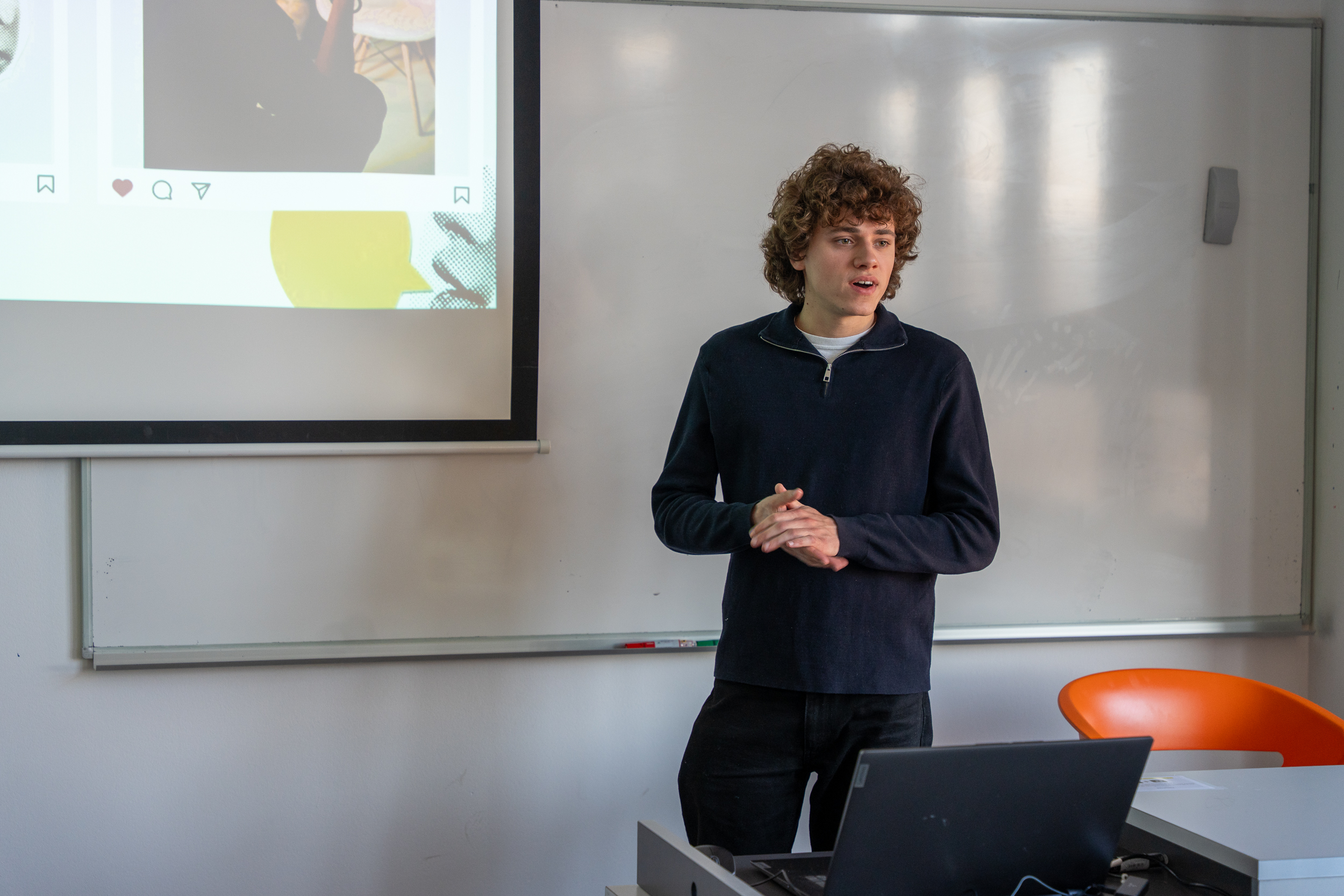 Predstavnici televizije upoznali su studente s projektnim zadatkom, a jedan od osnivača Blue TV-a Kristijan Škarica, upoznao ih je s novim konceptom emisije te im predstavio izazove koje su trebali riješiti u segmentu izrade digitalne strategije, potpunog profiliranja prema mladima i perspektivama digitalne promocije.