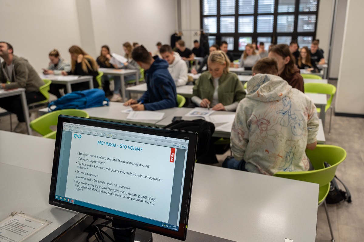 VERN’ove studente s ovim je konceptom upoznala Ksenija Genc Novak, akreditirani coach i mentorica te savjetnica za razvoj lidera, koje je vodila radionicu i naše je kolege provela kroz cijeli proces.