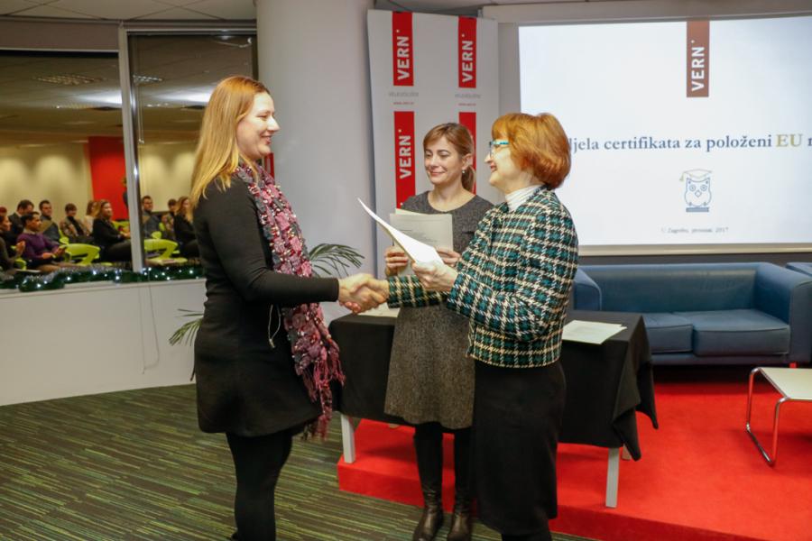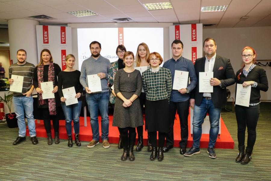 „Certifikat koji ste stekli je dodana vrijednost vašem životopisu. Riječ je o vrlo traženom području upravljanja EU projektima, a certifikatom dokazujete svoje kompetencije i sposobnosti za uspješno poslovno djelovanje u tom zahtjevnom procesu prijave, realizacije i izvještavanja o EU projektima. Visoki interes studenata za ovim modulom dokazuje i nova generacija, koja je najbrojnija dosad“, istaknula je ovom prilikom Višnja Grozdanić, VERN’ova prodekanica za studije.