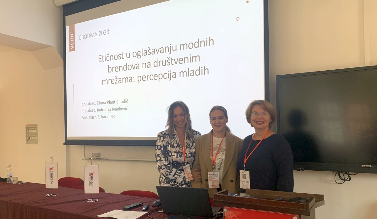 Naša studentica diplomskog studija Ana Klasnić i profesorice doc. dr. sc. Jadranka Ivanković te doc. dr. sc. Diana Plantić Tadić održale su izlaganje na temu znanstvenog rada „Etičnost u oglašavanju modnih brendova na društvenim mrežama: percepcija mladih“, tijekom kojega su predstavile svoje zaključke i rezultate znanstvenog istraživanja.