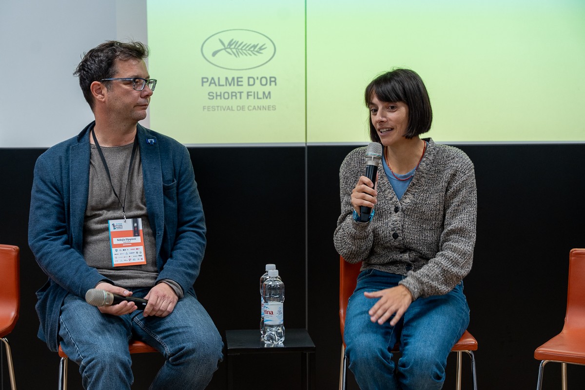 Naš predavač Nebojša Sljepčević, jedini dobitnik Zlatne palme u Hrvatskoj od osamostaljenja još je jednom doživio ovacije publike nakon projekcije kratkometražnog igranog filma „Čovjek koji nije mogao šutjeti“ koji mu je i osigurao ovu prestižnu nagradu te je ovogodišnji hrvatski kandidat za Oscara. O nastanku samog filma kao i budućim projektima razgovarao je u prigodnom dijalogu nakon projekcije s moderatoricom dr. sc. Višnjom Pentić, filmologinjom i filmskom kritičarkom.