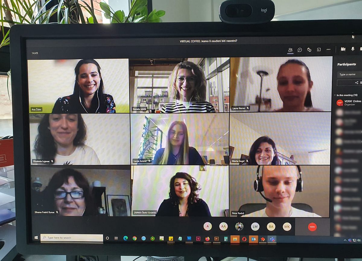 Na još jednom Virtual Coffee druženju VERN’ovi su studenti dobili vrijedne savjete dviju magistra psihologije Zrinke Štetić Grubišić i Ane Žulec s platforme ZAMisli, koje su ih upoznale s vještinama upravljanja emocijama i motivacijom, pojmom sreće te im ukazale kako poboljšati koncentraciju i na koji način društvene mreže koristiti u korisne svrhe.