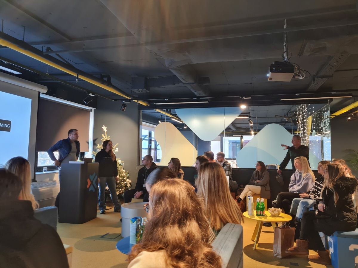 Naše studente i profesoricu dr. sc. Ivu Senegović ugostili su Lea Bošnjak i Anamarija Lonza iz Odjela ljudskih potencijala te producent mobilnih igara Tomislav Beber.