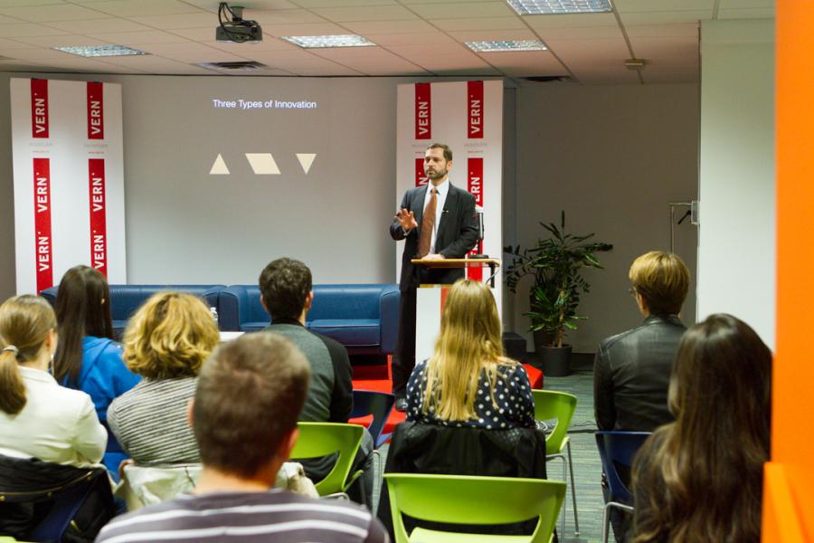 Horace Dediu, vodeći autoritet za poslovanje Applea, gostovao je na VERN'u te je za studente i profesore održao predavanje pod nazivom „Kako inovacije pretočiti u poslovni uspjeh“.