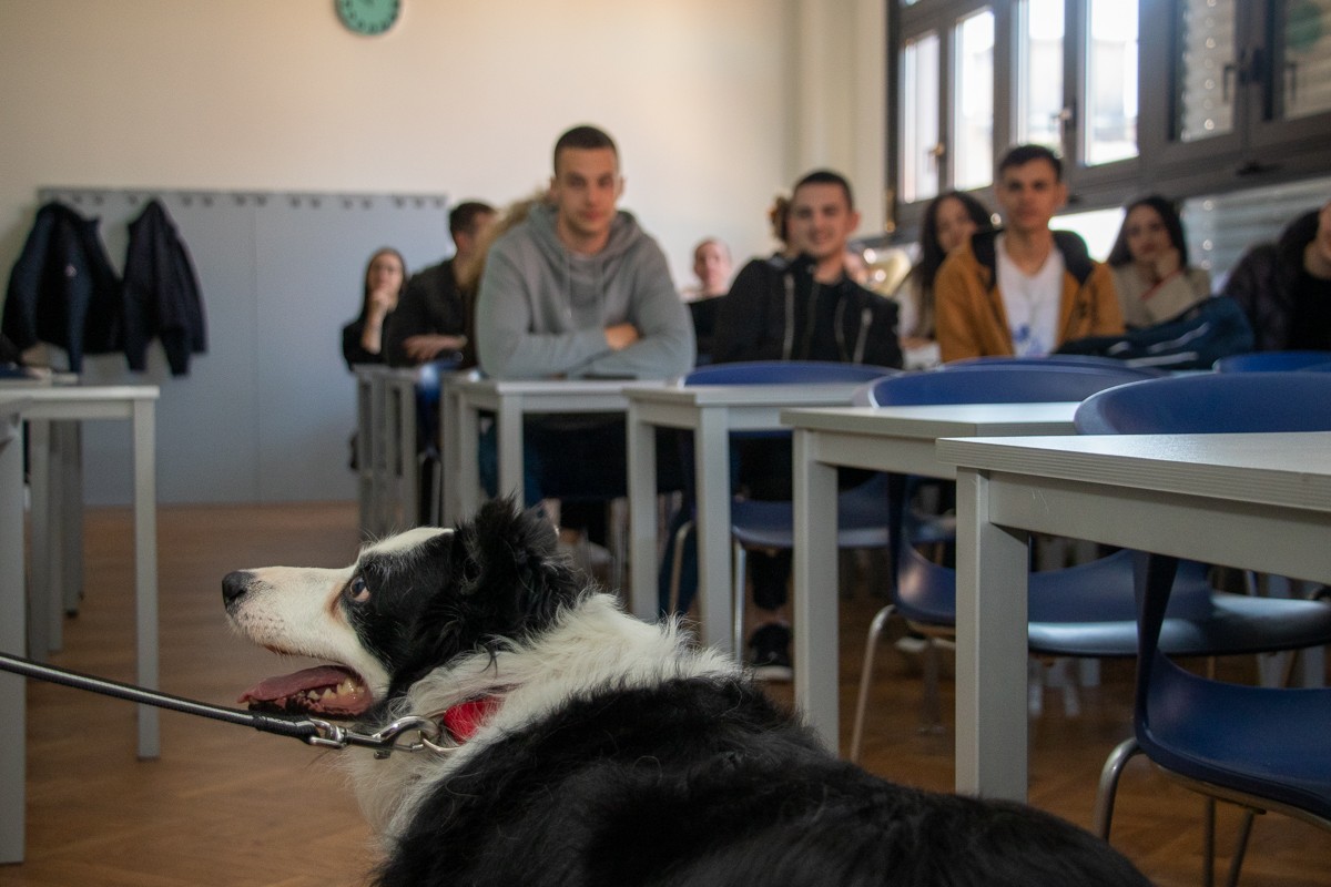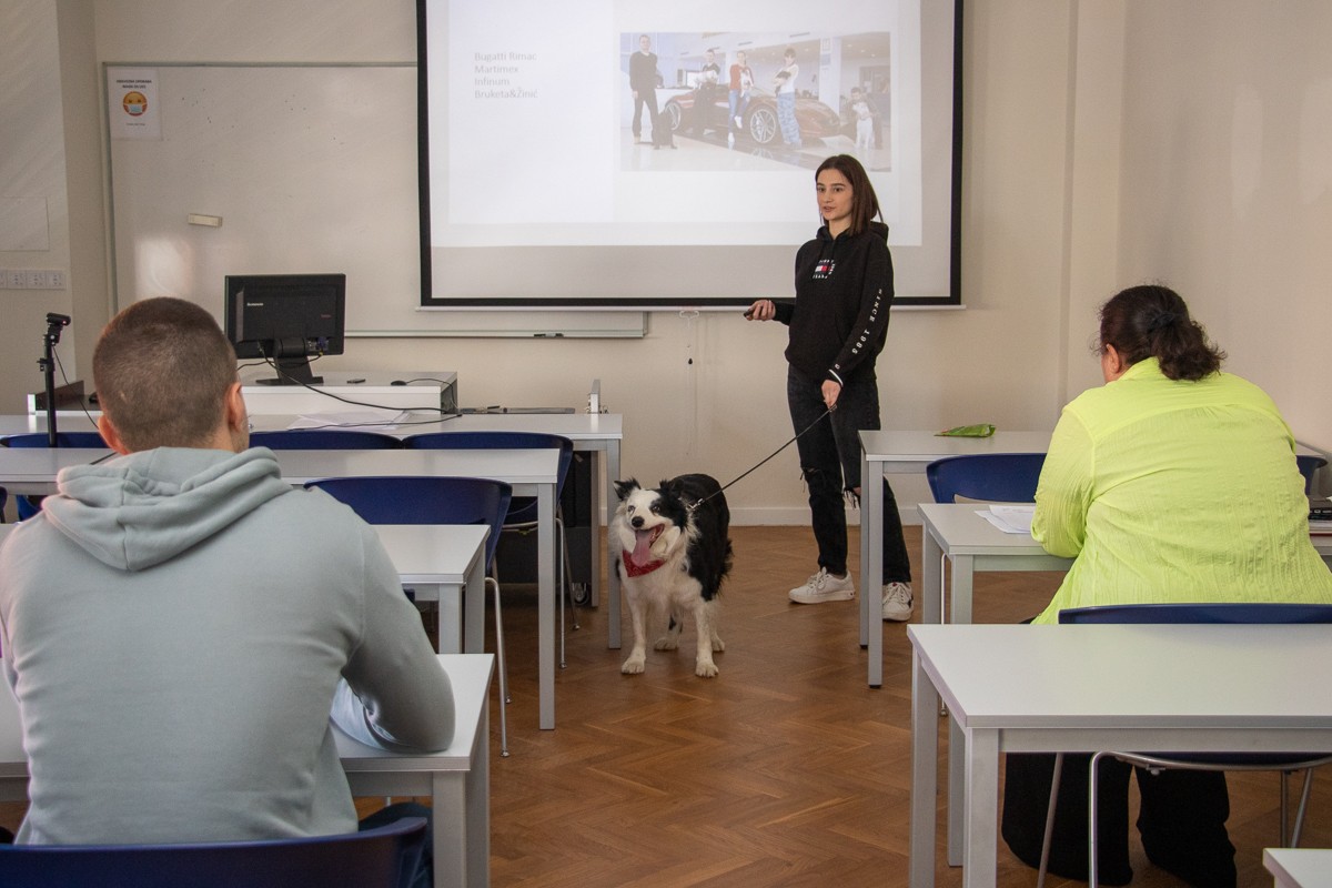 Na kolegiju Poslovna etika i kultura na preddiplomskom studiju Ekonomija poduzetništva održano je zanimljivo izlaganje seminarskog rada na temu „Ljubimci na radnom mjestu“, kojeg su prezentirali naša studentica Agata Lana Jukić i njezin „najbolji prijatelj“ Ben, 12-godišnji Border collie.
