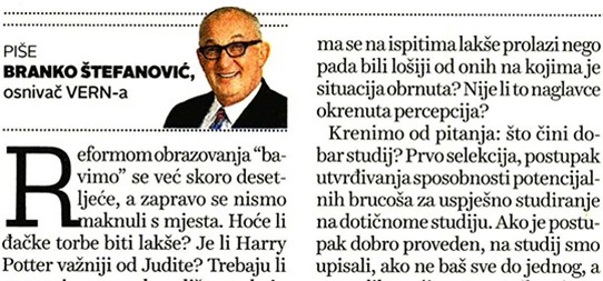 Jutarnji list: komentar osnivača VERN’a Branka Štefanovića „Što je zapravo dobar studij?“